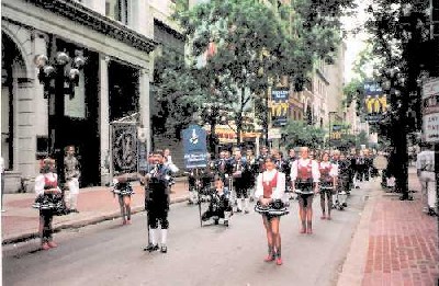 Teilnehmern, darunter das komplette Blasorchester, zur Steubenparade nach New York an der Ostküste