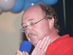 Als Moderator und Sänger verzauberte Wicky Junggeburth mit seinen kölschen Couplets ebenso das Publikum wie die a-capella-Formation "De Wanderer", die mit perfektem Harmoniegesang zu den Aufsteigern auch der musikalisch-karnevalistischen Szene gehören. Das Blasorchester erhielt für die großen Potpourris "Altstadtbummel", "Hits von Jupp Schmitz", "De Mädche vum Rhing", "Hits von Marie Luise Nikuta", "Kölle es e Jeföhl" oder die Erstaufführung "Die Weltmeister vum Rhing" sehr viel Beifall und bewies damit, das Karnevalsmelodien gut arrangiert und gespielt auch in einem konzertanten Rahmen passen. Wicky Jungeburth sang, unterstützt vom Blasorchester, die neu arrangierten Lieder "Trööte es schön", "Komm joot heim" und, mit neuem Text versehen, den Song "Souvenirs, Souvenirs". Aber auch für das Couplet "Ich un minge Caravan" gab es reichlich Beifall.